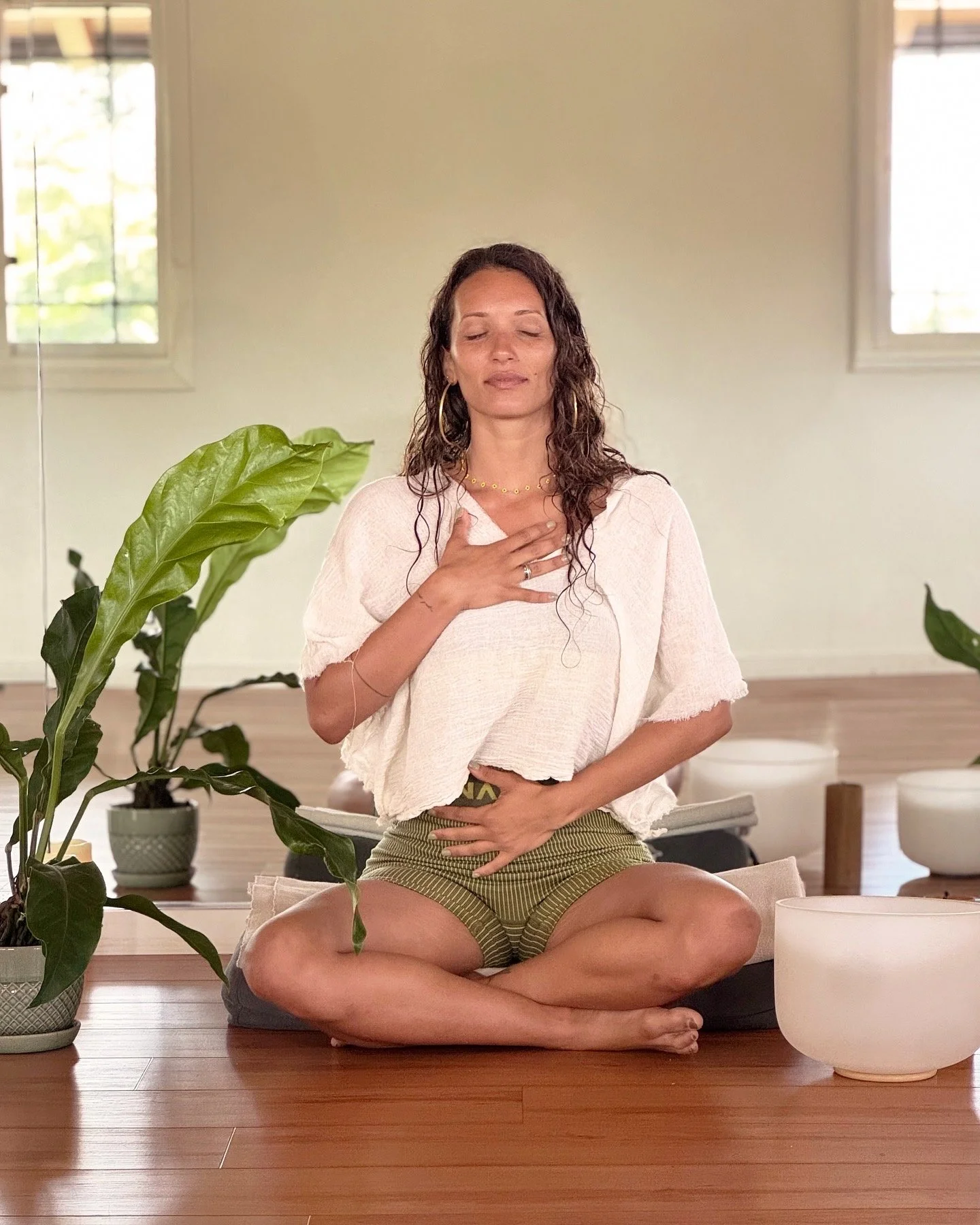 Jenny is a breathwork, yoga, and sound healing facilitator who guides practices that reconnect you with your inner world. She trained as a Breathwork facilitator with David Elliott, deepened her yoga studies with Bhavani Silvia Maki after completing her 200-hour training in Los Angeles, and became certified in Sound Healing, inspired by her sensitivity to vibration and harmony. In 2022 she sat a 10-day Vipassana meditation in South Africa, an experience that continues to inform the way she holds space.